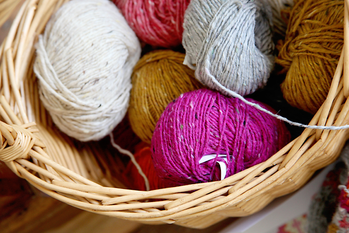 The wool above is Debbie Bliss Donegal Tweed Aran and comes in some gorgeous brights.