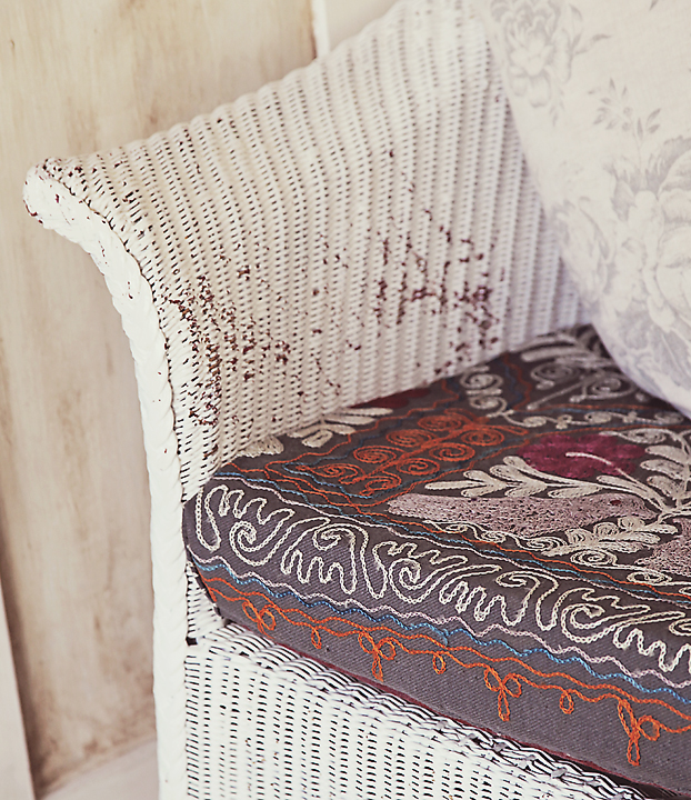 Just recently I have been buying Kantha quilts and Suzanis. Kantha is the name of the stitch used to patchwork vintage saris together to make quilts and blankets in India. The two I have on the floor above are very old and faded, they bridge a gap between ethnic and country perfectly.  Suzanis are embroidered pieces from Afghanistan, I have been using them as throws and also recovered some seat cushions.