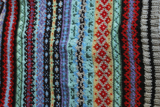 Since the minute I took up knitting, which actually was only just over two years ago, I wanted to knit fairisle, plain knitting seemed just too boring and whilst I don't mind the odd cable, its not the the fancy stitches that interests me but the way to bring lots of colour together.  This, I discovered, is exactly the same reasons which started a life long career for Kaffe Fassett.