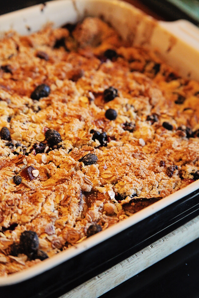 To make the crumble a bit more interesting she put a bit of meusli in it.