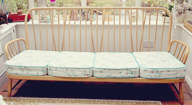 A couple of our much loved pieces have come from skips. Recently we saw this Ercol Sofa frame just lying amongst the rubble of a refurbished office, the frame was in very good condition, a testament to how well made it was in the late seventies. I have blogged about this on the DIY page showing how I made the cushions from foam.